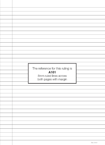 The reference for this ruling is A101 8mm ruled lines across both pages with margin Ref: A101