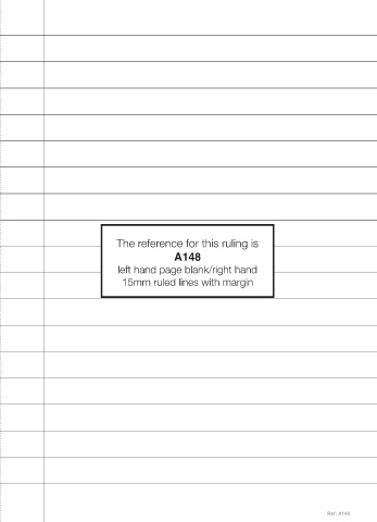 The reference for this ruling is A148 left hand page blank/right hand 15mm ruled lines with margin Ref: A148